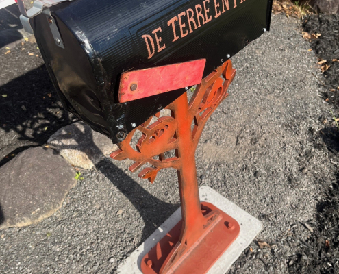 - Liste des matériaux : Acier (pièces de machinerie agricole récupérées et tube) peinture, roche.